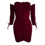 1one-shoulder Long-sleeved Tube Top Sexy Dress - Wine