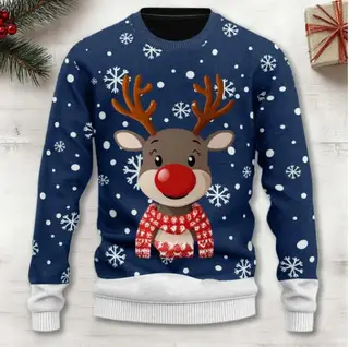 3d Digital Printing Series Thick Needle Pull Strip Crew Neck Pullover