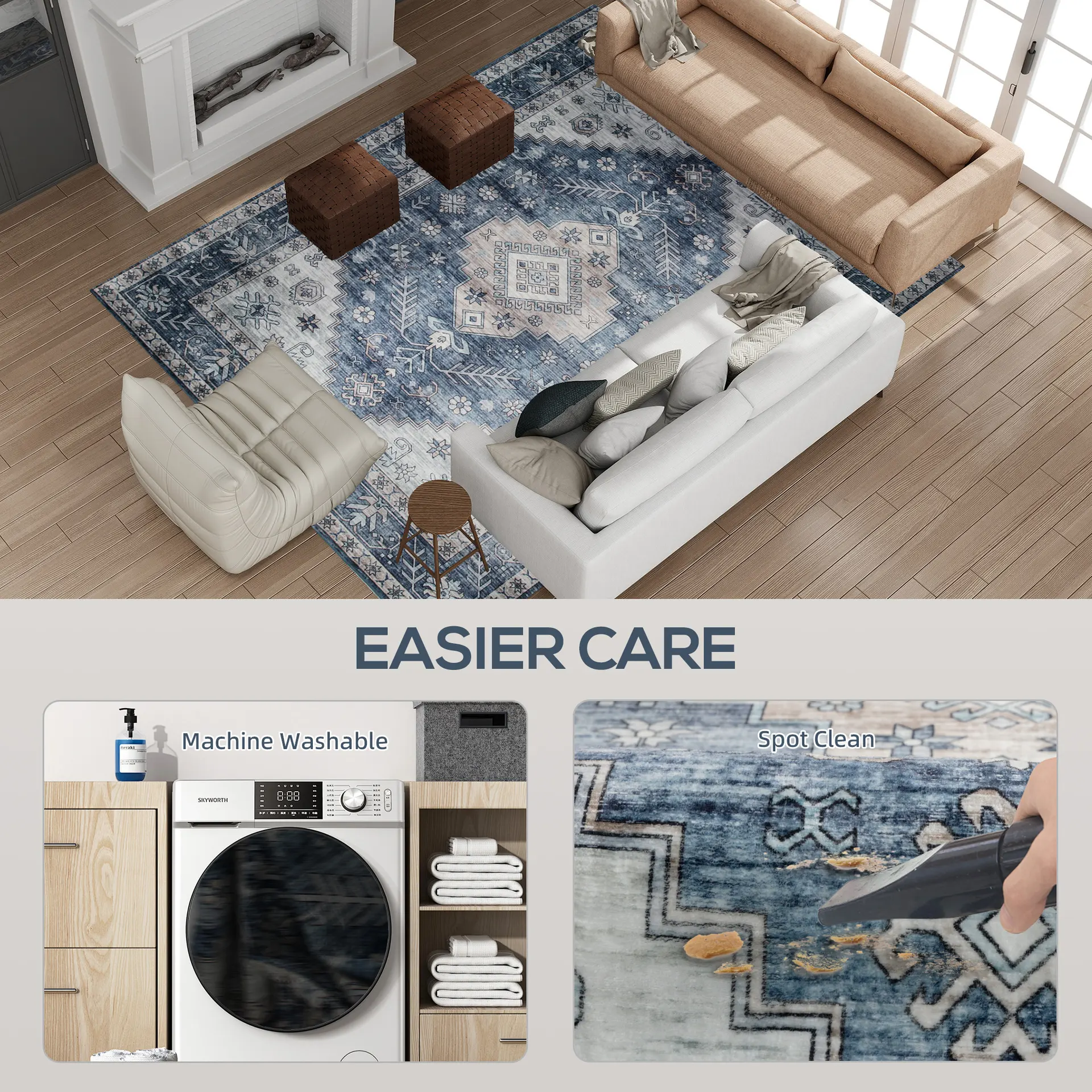 8x10 Area Rug, Vintage Washable Rug, Non-slip