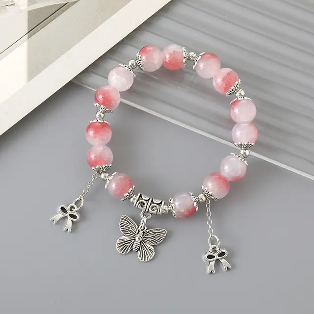 Product information: Processing Technology: manual Color: K3334 butterfly crack bead bracelet pink, K3335 butterfly crack bead bracelet Blue, K3336 butterfly crack bead bracelet Brown, K3337 butterfly crack bead bracelet Black Applicable people: Couple style Style: Women's Material: Glass/colored glaze Modeling: Geometry Popular elements: round, ring Style: sweet and cool Packing list: Crystal bracelet X1pcs Product Image: