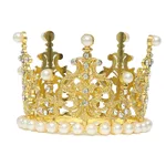 Alloy Round Pearl Crown Cake Decoration - Gold