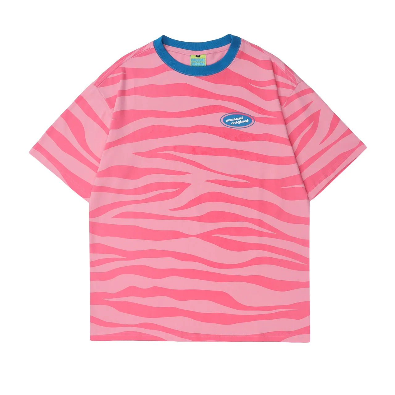 HomeTopsT-Shirts & TeesHarajuku Style Color Block Zebra Pattern Short Sleeve - Pink