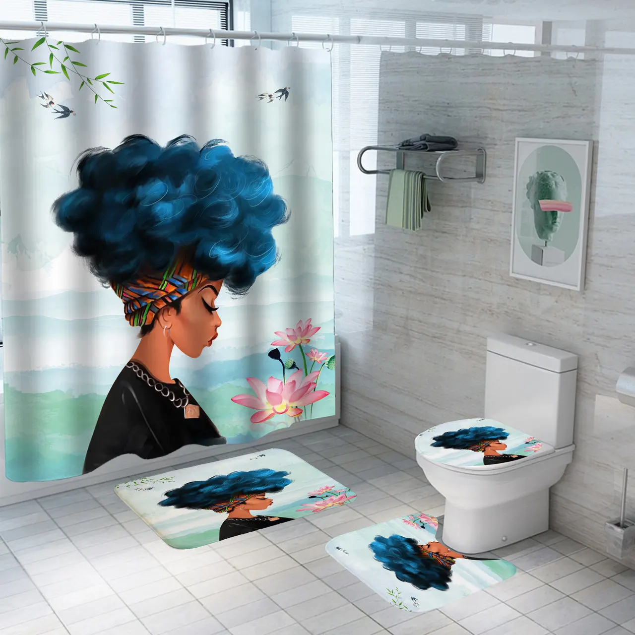 Product information: Material: Pongee (polyester) Style: Pastoral Pattern: blue female head series Color: YF499, YF500, YF501, YF502, YF503, YF504 Specification : Size information: 90*180, 120*180, 150*180, 165*180, 180*180, 180*200, three-piece suit, four-piece suit Packing list : Shower curtain*1 or four-piece set*1 or three-piece set*1 Product picture:
