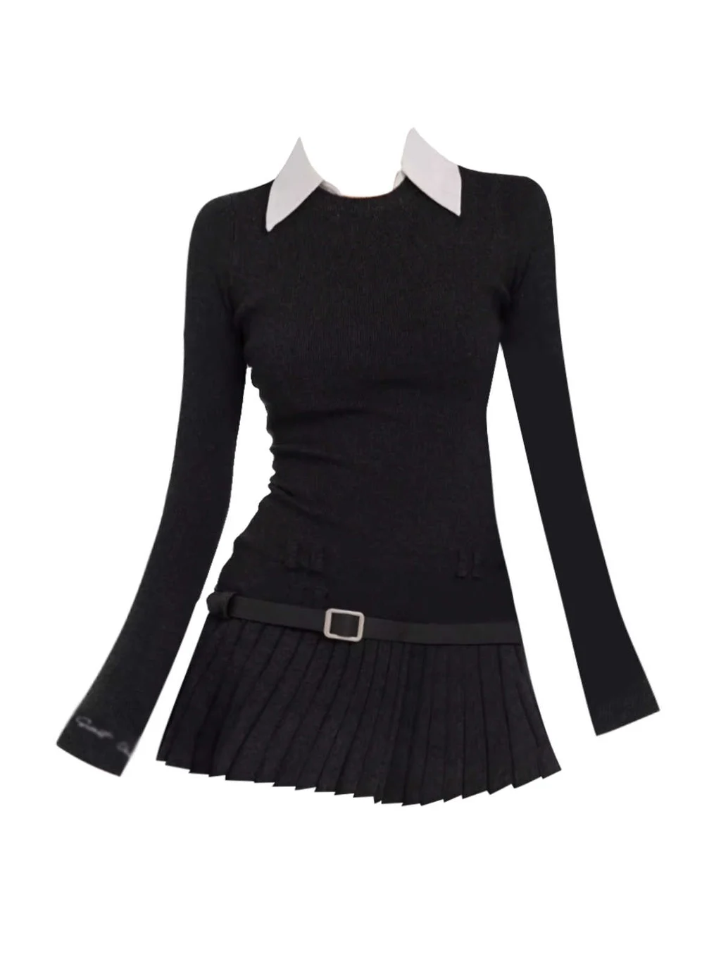 Retro Faux Two-piece Shirt Collar Dress - Dark Grey