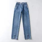 Product Details: Fabric name: Denim Main fabric composition: cotton The content of the main fabric ingredient: 71%-80% Style: Slim pants Length: trousers Waist type: high waist Color: light blue, dark blue, black Size information: Size: XS,S,M,L Size(cm) Waist Hips Pants length S 58 88 105 M 62 92 106 L 66 96 107 XL 70 100 108 Prevention: 1. Asian sizes are 1 to 2 sizes smaller than European and American people. Choose the larger size if your size between two sizes. differences due to . 2. Please check the size chart carefully before you buy the item, if you don't know how to choose size, please contact our customer service. 3.As you know, the different computers display colors differently, the color of the actual item may vary slightly from the following images. Package Contents: Women's cotton trousers X1