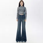 Retro Loose Straight Wide Leg Jeans - Dark Blue Ninth Pants
