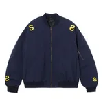 Embroidered Letter Stand Collar Flight Jacket - Navy