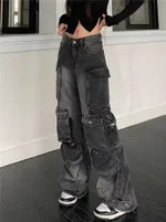 Multi-pocket Workwear Jeans For - Black