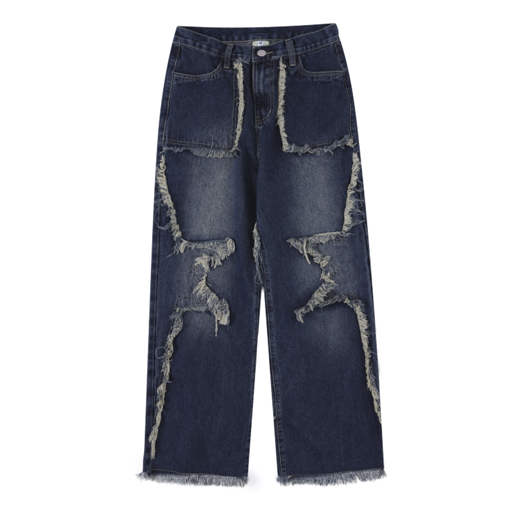 Product information: Fabric name: Denim Color: Blue Main fabric composition: Cotton Pants length: Trousers Size: S,m,l,xl,xxl Style type: Street hipster Pants type: Straight-leg pants Style: Cowboy style Size: Unit: cm Note: 1. Asian sizes are 1 to 2 sizes smaller than European and American people. Choose the larger size if your size between two sizes. differences due to . 2. Please check the size chart carefully before you buy the item, if you don't know how to choose size, please contact our customer service. 3.As you know, the different computers display colors differently, the color of the actual item may vary slightly from the following images. Packing list: PANTS*1 Product Image: