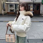 Winter Short Faux Fur Collar Padded Coat For - Beige