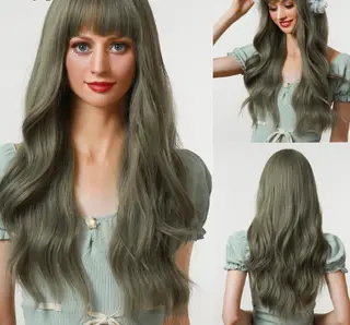 Product information: Efficacy: Bangs long curly hair Applicable face type: Any face type Wig style: Bangs long curly hair Hair material: Japanese silk Applicable skin color: White Color classification: Purple gradient, brown gradient, dark purple, light purple, barbie pink, gradient green, gradient blue, dark green, gray gradient purple Style: Natural Packing list: Wig *1 Product Image: