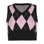 Argyle Plaid Knitted Tank Top V Neck Sweater Vest