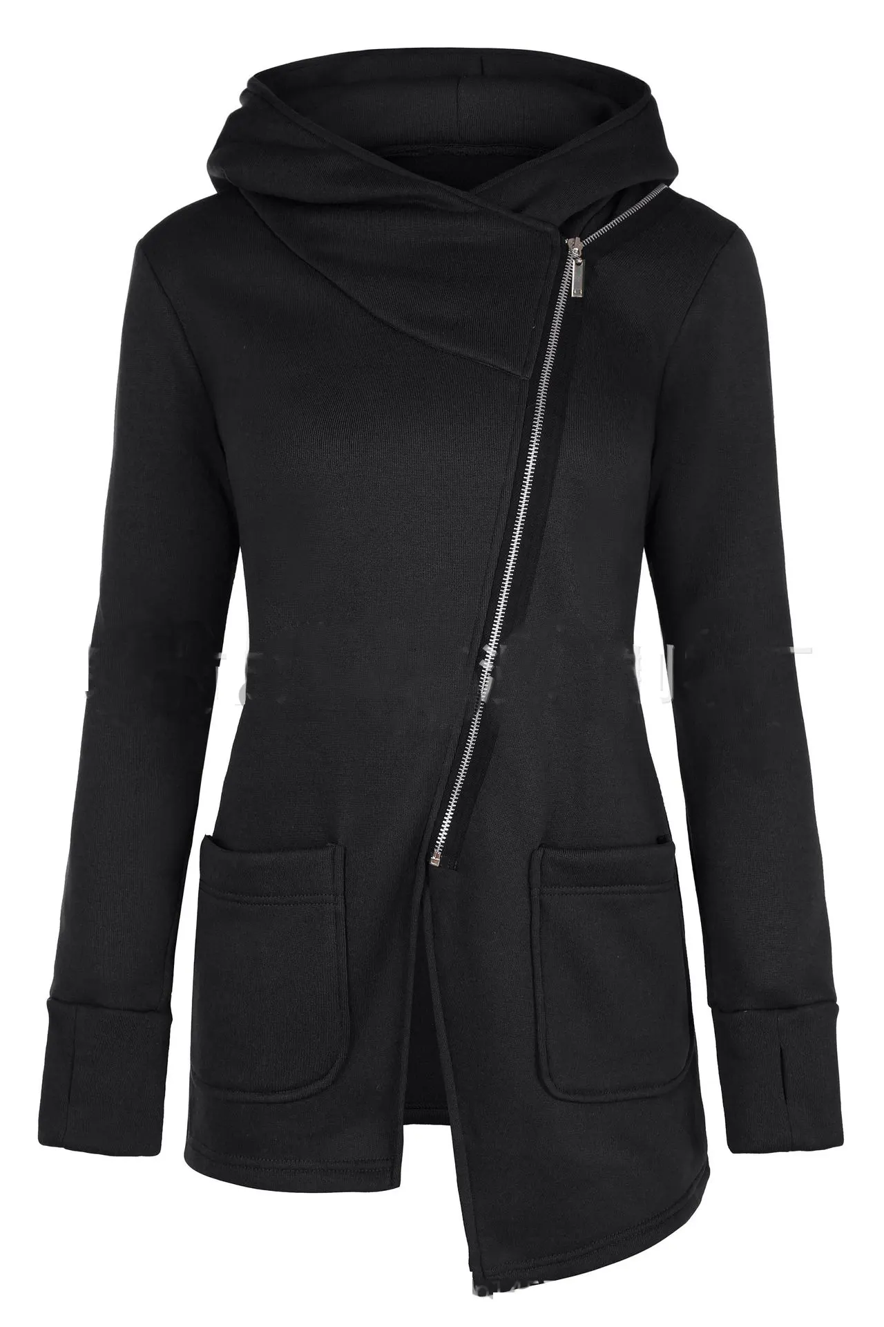 Autumn And Winter Oblique Zipper Irregular Hooded