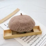 Product information: Main material: wool blend Size: M (56-58cm) Style: sweet and lovely Crowd: women's style Details: Letters Color classification: yellow camel, black, deep purple, royal blue, off white, coffee, light gray, pink, big red, beige, mocha, rust red Applicable scenario: shopping Applicable objects: young couples Crown style: dome Style: beret Packing list Hat * 1