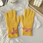 Autumn And Winter Bow Pure Color Warm Keeping Finger Gloves - Yellow