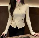 Autumn And Winter Retro Apricot Semi-high Neck Knitted Sweater Fitted