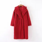 Autumn And Winter Lamb Wool Long Coat - Red