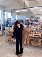 Autumn And Winter Wool Suit V-neck Knitted Wide-leg Pants Cashmere