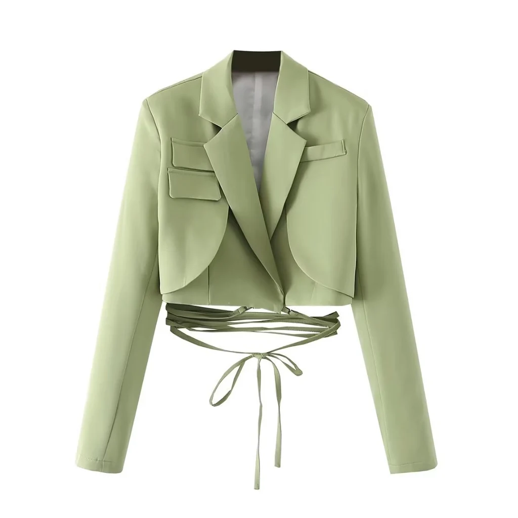 Autumn Solid Color Waist Rope Lace Suit Long Sleeve Jacket - Grass