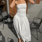Product information: Color: White Waist type: low waist Size: S,M,L Sleeve type: sleeveless Main fabric composition: Polyester Note: 1. Asian sizes are 1 to 2 sizes smaller than European and American people. Choose the larger size if your size between two sizes. differences due to . 2. Please check the size chart carefully before you buy the item, if you don't know how to choose size, please contact our customer service. 3.As you know, the different computers display colors differently, the color of the actual item may vary slightly from the following images. Packing list: Dress*1 Product Image: