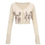 Autumnins Personality Eye Print Slim Mesh T-shirt - Beige