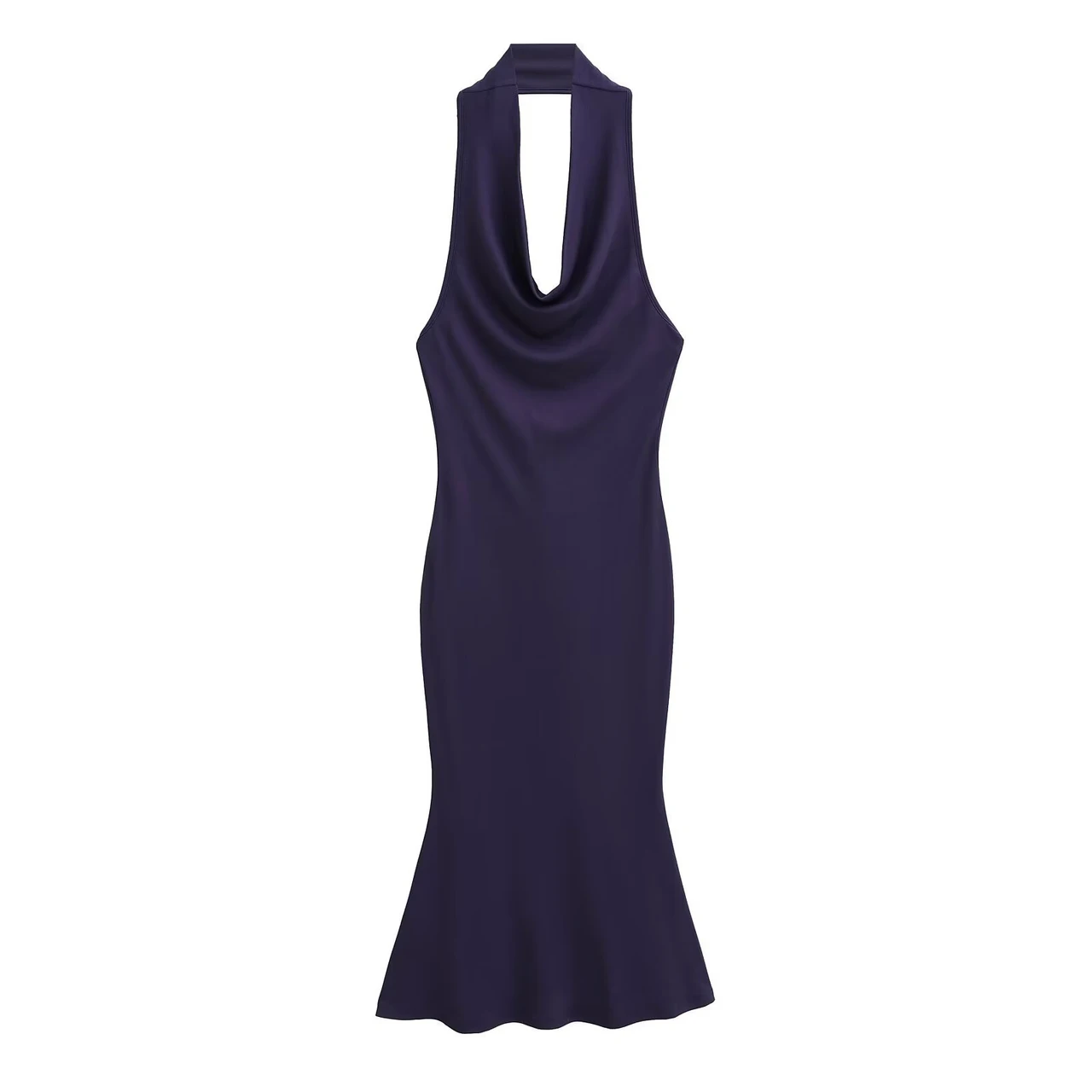 Bare Back Tight Sexy Sheath Fishtail Dress - Navy