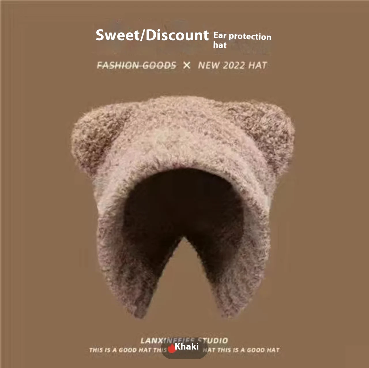 Bear Knitted Hat Wool Keep Warm Makes Face Look Smaller - Khaki