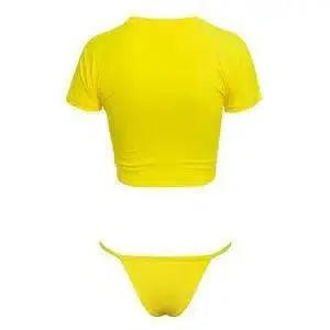 Elevate your summer wardrobe with our chic Women's Bikini Set. Featuring a fashionable short sleeve crop top and a stylish V-neck, this bikini is perfect for beach outings, pool parties, or casual summer wear.