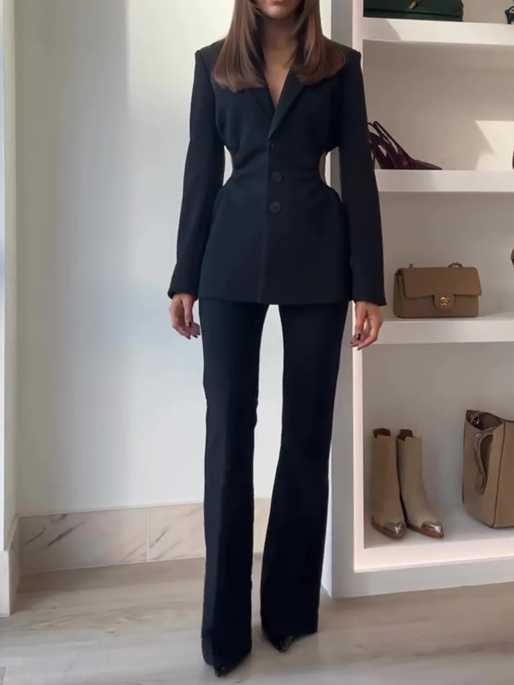 Black Waist Cutout Blazer High Waist Pants Suit -
