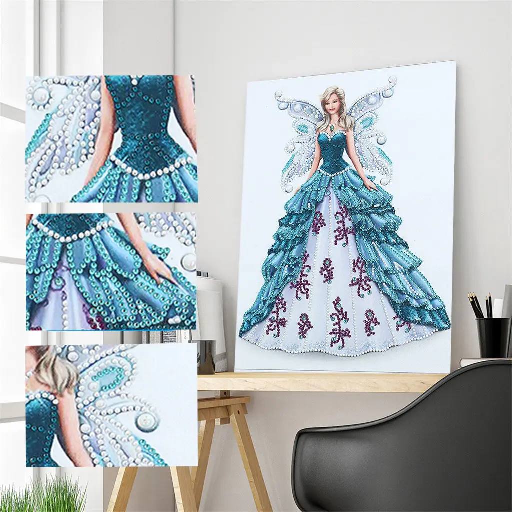 Blue Angel Diamond Painting Dress Partial Rhinestone Shaped Crystal