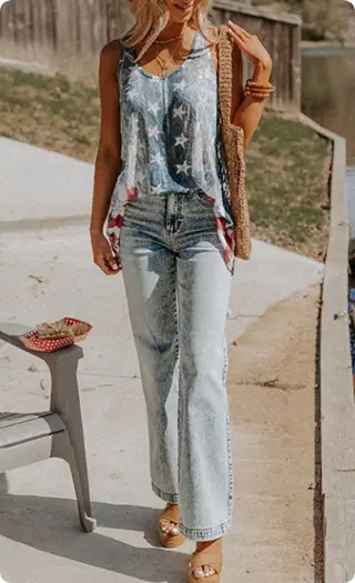 Blue Vintage Washed Flag Print Tank Top - Blue