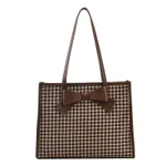 Bow Houndstooth Trendy Shoulder Bag - Coffee