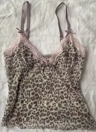 Bow Lace Trim Printed Sleeveless Tank Top - Leopard Print 1