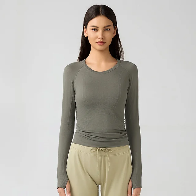 Exercise Top Stretch Slim-fit Yoga Wear - Kaki