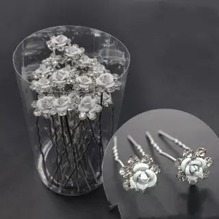 Bridal Plate Hair Fork U-shaped Clip Diamond And Flower Hair Clip - A7