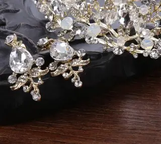 Bride Crystal Crown Hair Accessory - Golden White Diamond Ear Pins