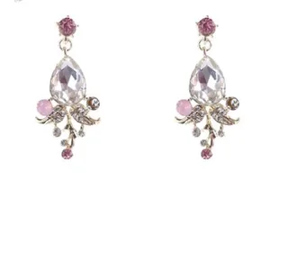 Product information: Material: Crystal Crystal type: white crystal Modeling; flowers colour: Pink diamond ear pins, Golden white diamond ear pins, Pink ear clips, Golden white diamond ear clips, Silver White Diamond Ear Pins Packing List Ear pin*1 Ear clip*1 Alloy headgear*1