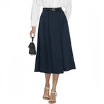 Business- Flared A-line Pleated Skirt With Pockets - Navy