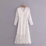 Butterfly Embroidered Lace Shoulder Chiffon Dress - White