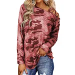 Camouflage Printed Shoulder Straps Cross-neck Long-sleeved T-shirt -