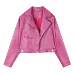 Loose Wind Turbine Motorcycle Suit Handsome Pu Leather Jacket - Rose
