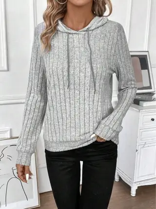 Rib Sunken Stripe Pullover Hooded Long Sleeves