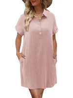 Short Sleeve Buttoned Beach Dress Shirt With Pocket - Pink