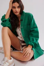 Versatile Pocket Side Slit Denim Coat - Green