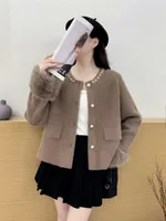Chanel-style Knitted Cardigan Autumn Sweater Jacket - Camel