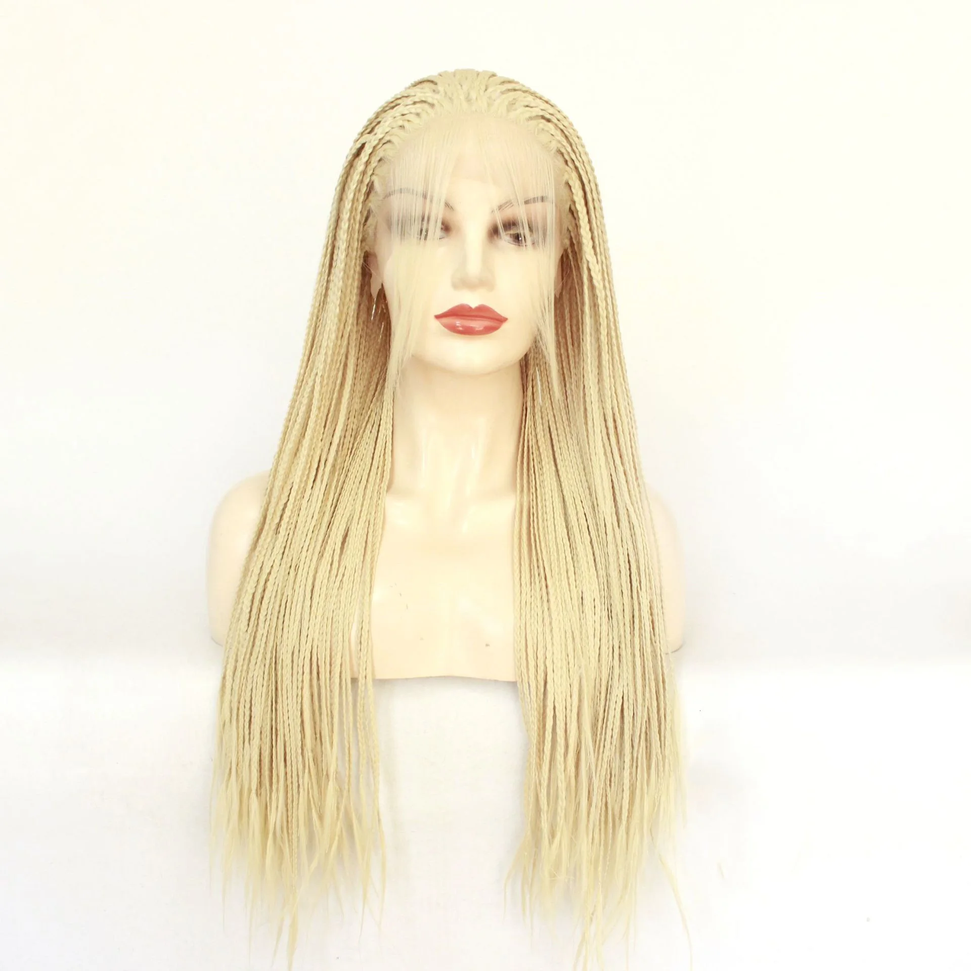 Product information: Style: exotic Applicable people: Ladies Processing technology: half mechanism and half hand hook Can it be dyed and ironed: It can be dyed Hair material: high temperature wire Applicable skin color: any skin color Applicable face shape: any face shape Type of bangs: can be slanted Efficacy: beautiful and confident Wig hairstyle: long braided hair Cosmetic features: lifelike and natural Size: 20 inches, 22 inches, 24 inches, 26 inches Packing list: Wig set*1