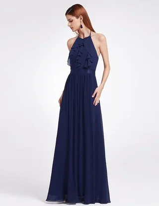 Chiffon Bridesmaid Dress Wedding Long Dress - Navy Blue A