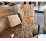 Chiffon Printed Dress Summer Mid Length - Green Flower Elevated