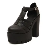 Product information: Lining material: PU Toe holder shape: round head Color: Black Shoe Upper material: PU Size: 35,36,37,38,39,40,41,42 Wearing method: Buckle Sole material: rubber Applicable places: parties, bars, streets Style: Roman style Size: Packing list: Shoe x 1 pair Product Image: