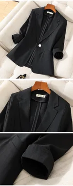 Product information: Pattern: solid color Color: oatmeal color, white A, Gray, khaki, black set, olive green, white B Size: S,M,L,XL,XXL,3XL,4XL Style: slim fit Style type: temperament commute Main fabric composition: Polyester (polyester fiber) Length: normal (50cm Applicable Gender: Female Sleeve length: 3/4 sleeve Note: 1. Asian sizes are 1 to 2 sizes smaller than European and American people. Choose the larger size if your size between two sizes. differences due to . 2. Please check the size chart carefully before you buy the item, if you don't know how to choose size, please contact our customer service. 3.As you know, the different computers display colors differently, the color of the actual item may vary slightly from the following images. Packing list: Coat *1 Product Image: